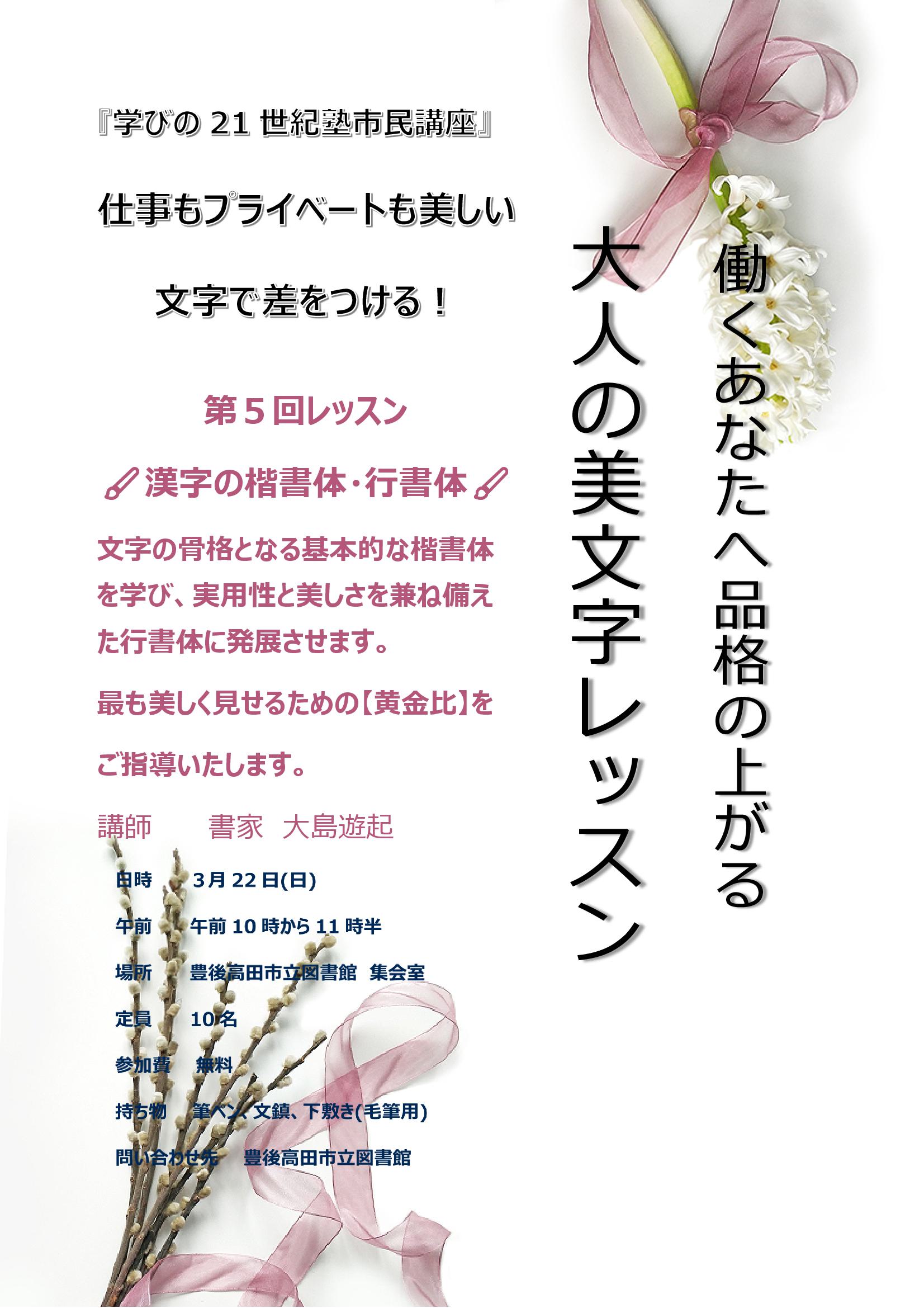大人の美文字レッスン 第5回【漢字の楷書体・行書体】 ![]() ![]() |